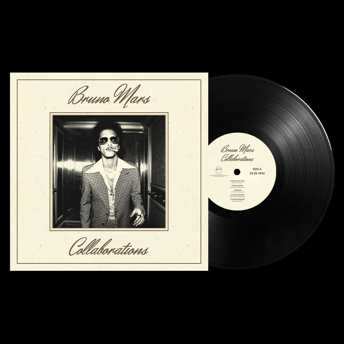 Collaborations, a compilation album featuring some of Bruno Mars’ most iconic collaborations to date featuring “Uptown Funk” with Mark Ronson, “Die With A Smile” with Lady Gaga, “APT.” with ROSÉ, and more.